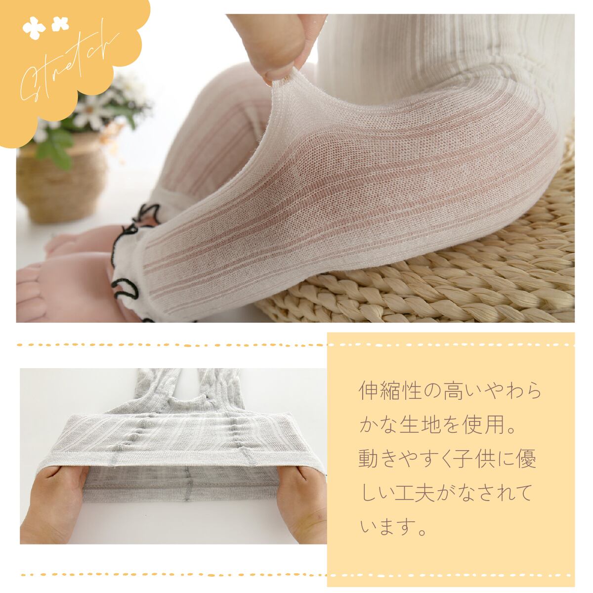 ・伸縮性が良く、履かせやすく動きやすい。