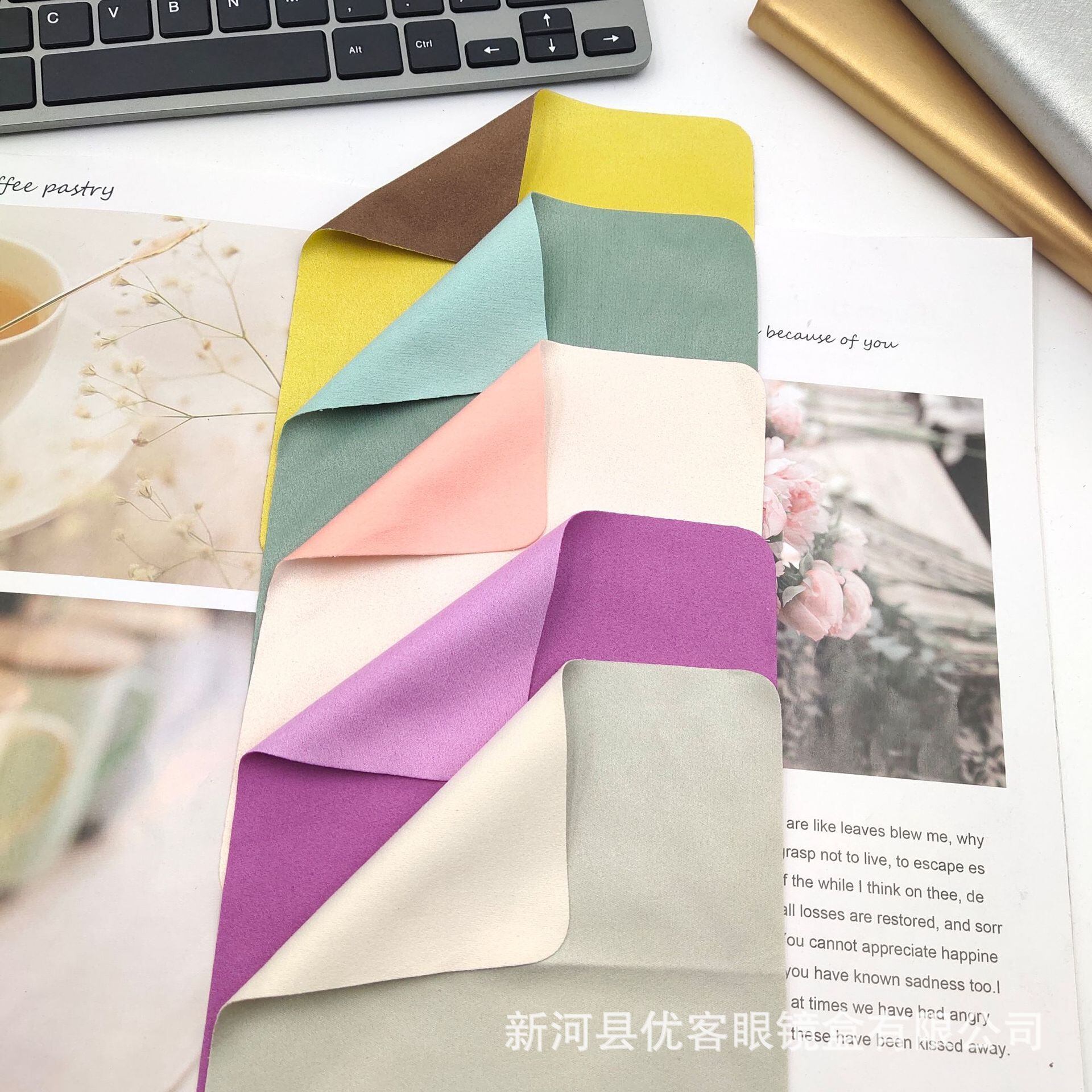 ・カラフルで鮮やかなデザインが特徴のメガネ拭きです。