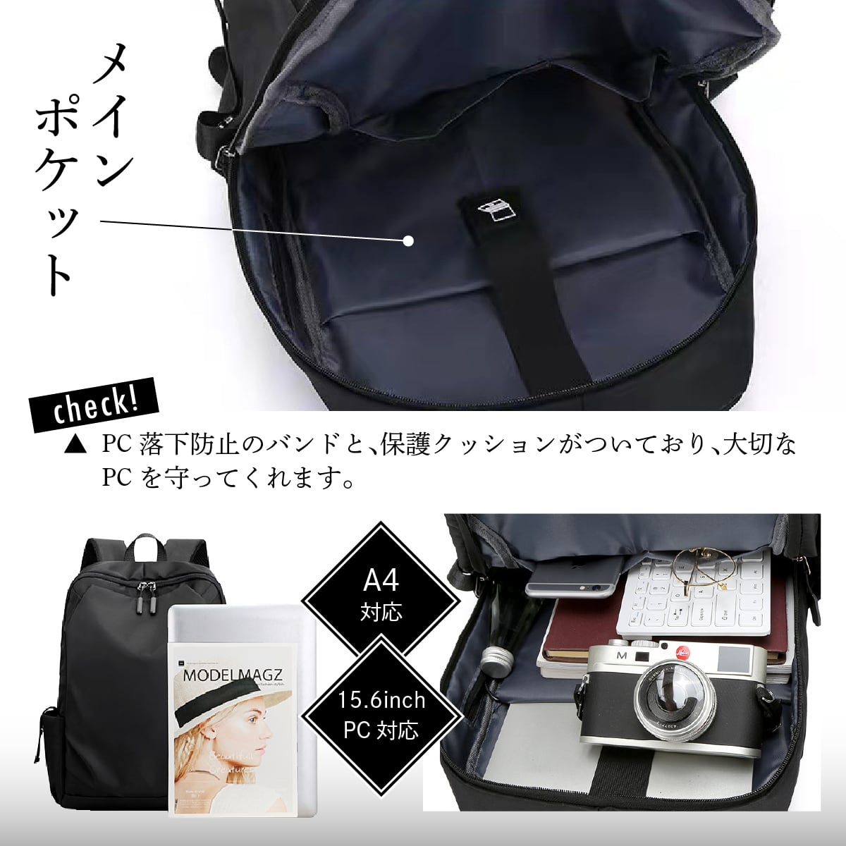 A4サイズの雑誌やノートPCも入ります。