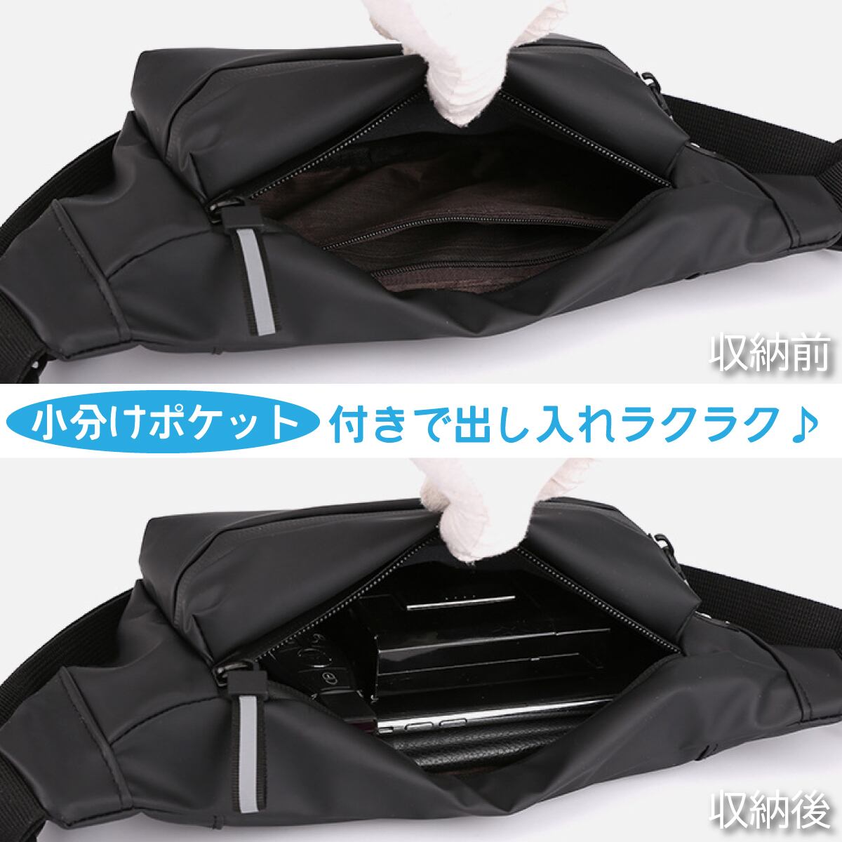 荷物をコンパクトに収納できるボディバッグです。