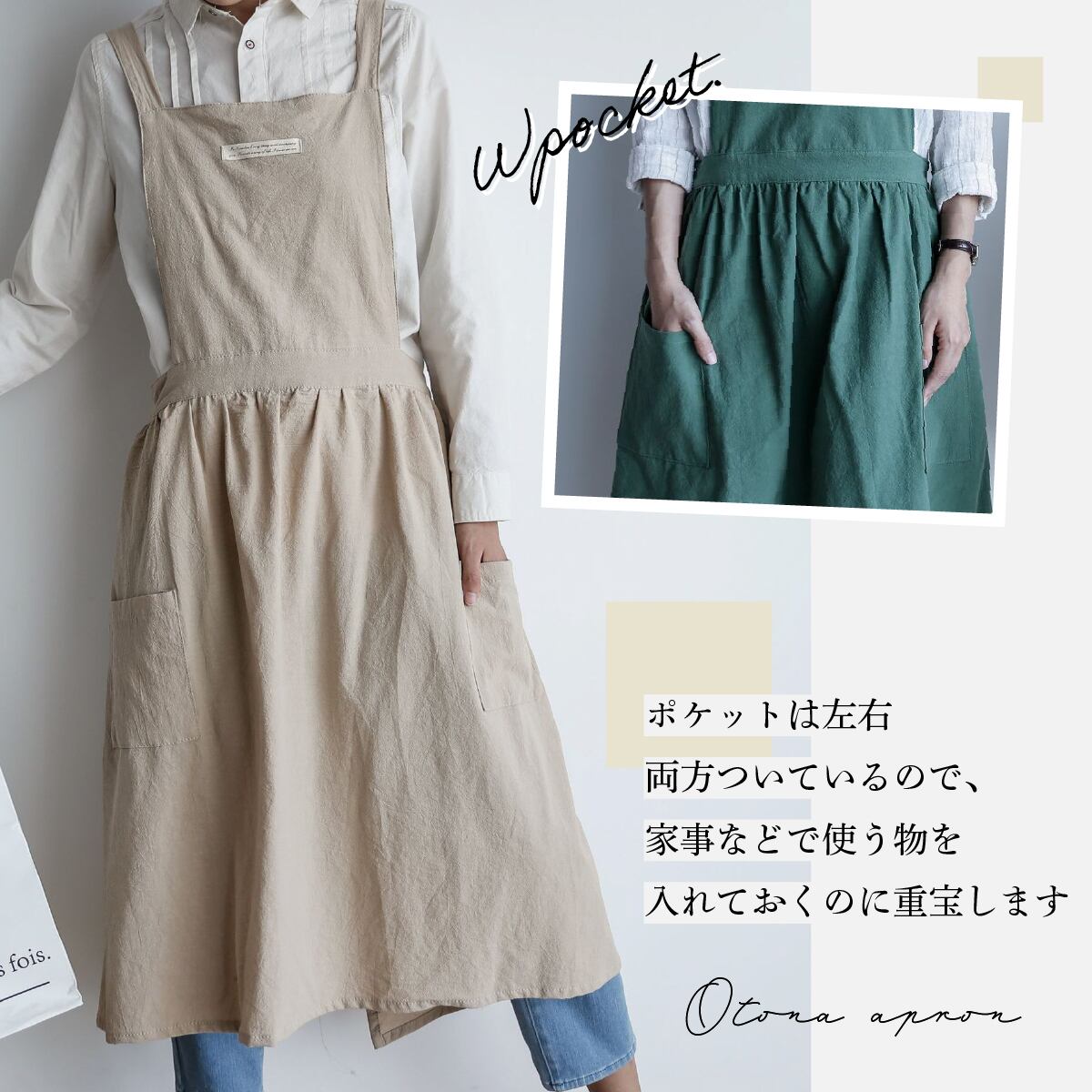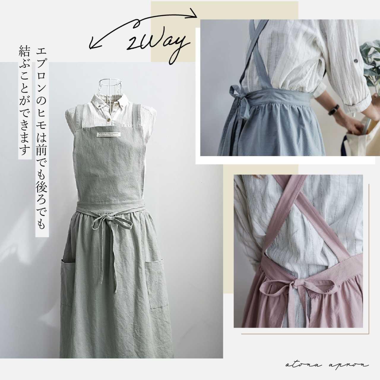 家事や仕事用のエプロンはもちろん、ガーデニングやDIYの時にも活躍。